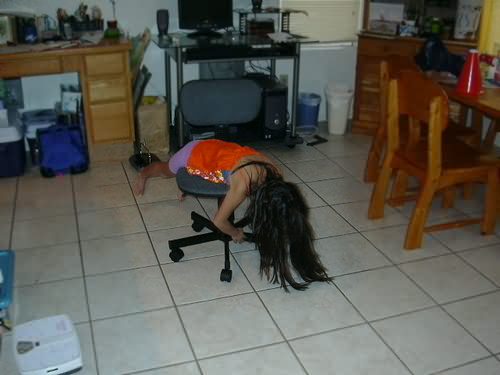 ハロウィンの夜を待つ愛海。最近、愛海は退屈になるとイスで回る。
