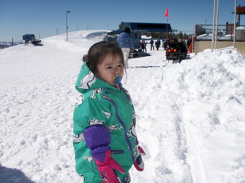 おしゃぶりをしたままスキーに挑む珠理